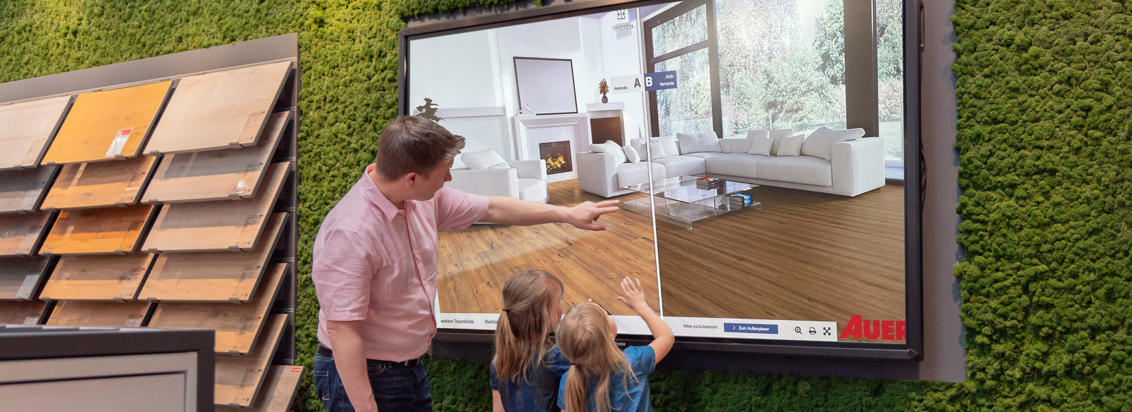Probieren Sie sich zusammen mit Ihrem Berater digital und nach Herzenslust durch Materialien, Farben und Verlegemuster - bis alles passt.