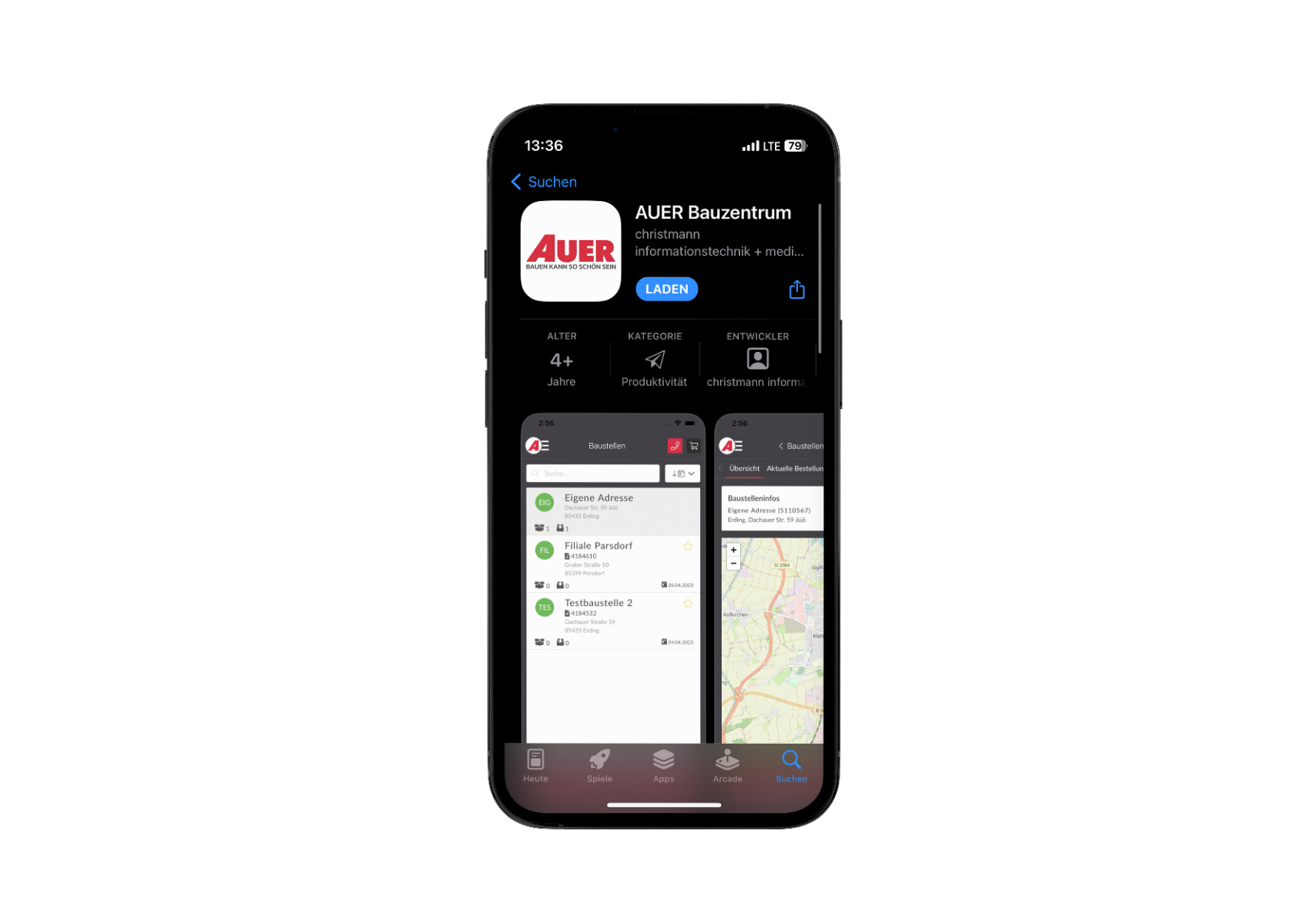 Laden Sie sich die kostenlose AUER Baustellen App herunter und beantragen Sie über den unten stehenden Button Ihren Zugang direkt bei uns. Wir legen Ihr Benutzerprofil an und schicken Ihnen Ihre Zugangsdaten schnellstmöglich zu. Mit der Registrierung sind alle aktiven Baustellen verfügbar.