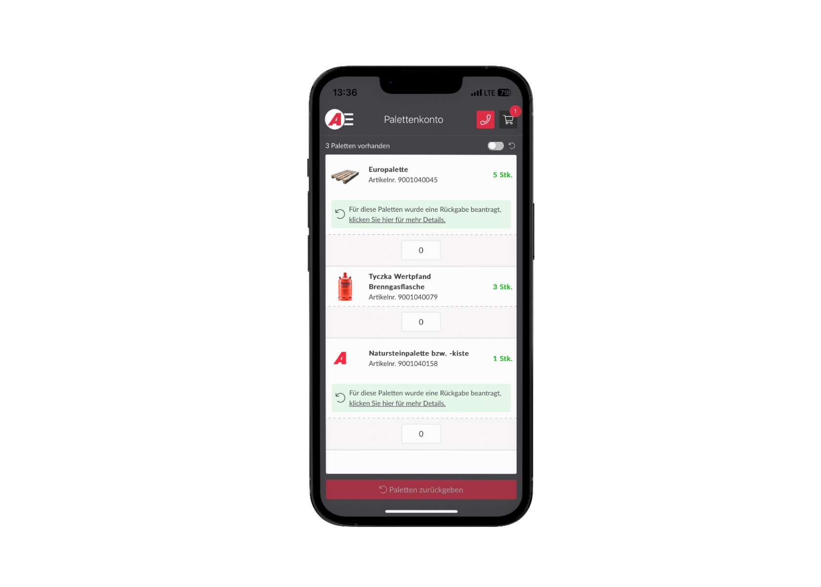 Palettenkontostand einsehen/ Rückgabe von Paletten organisieren