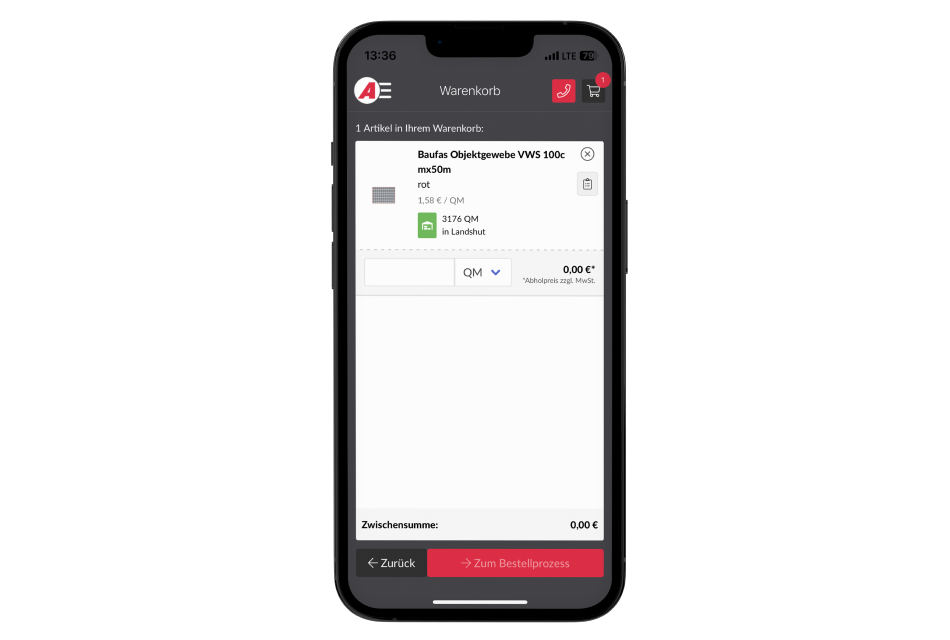 In Ihrem Warenkorb befinden sich die von Ihnen ausgesuchten Artikel. Sie können hier Anlieferung oder Abholung sowie Ihren Wunschtermin für die Lieferung auswählen. Die Warenkorb-Funktion ermöglicht Ihnen so, immer schon einen Schritt im Voraus zu planen.
